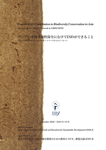 本パンフは、生物多様性条約第10回締結国会議(CBD/COP10)の参加者に対するAGEPPネットワーク(アジアESD推進事業(2006-2008)をESD-Jと実施したアジア6カ国のNGOのネットワーク)からのメッセージとしてスラバヤワークショップで取りまとめられたもので、ESDに取り組むアジアのNGOコミュニティとの協力や協働の強化について考慮を求めるものです。(2010.10)