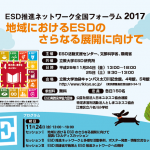 【イベント情報】ESD推進ネットワーク全国フォーラム201711/24(土),25(日)@池袋 投稿日: 2017/10/302020/09/18 ESD活動支援センターでは、ESDを広げ実践の質を高めていくために昨年に引き続きESD推進ネットワーク全国フォーラムを開…