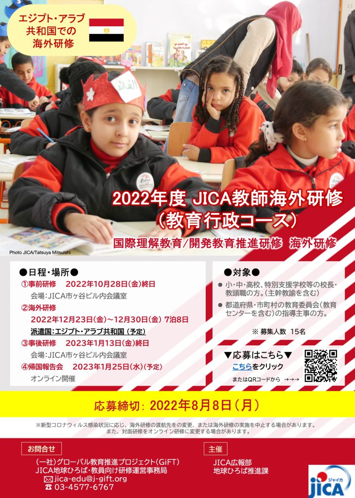 【参加者募集】2022年度 JICA教師海外研修(教育行政コース)