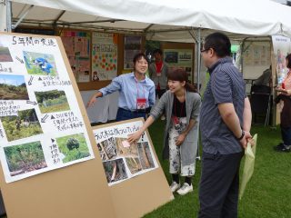 中学校3年生の時に実施した「ツゲ峠鹿柵プロジェクト」の展示をし、来場者に自分たちの実践を発信することを通し、もう一度自分たちの実践の意味を問い直し、より深くESDを捉え直すきっかけとなりました。