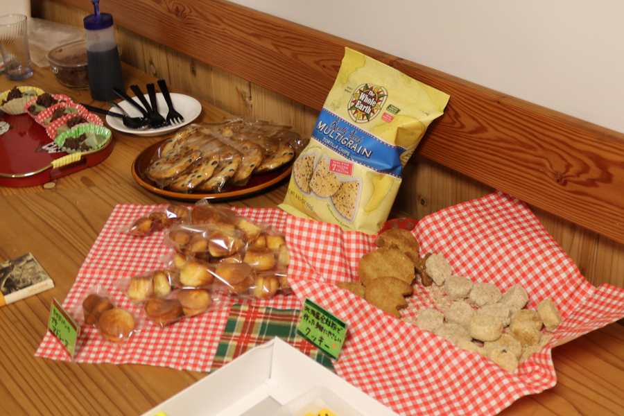 本日のsweets:武田パンオリジナルマドレーヌとパウンドケーキ、小豆入り豆乳プリン、北海道全粒粉クッキー3種類、フェアトレードチョコレートなど