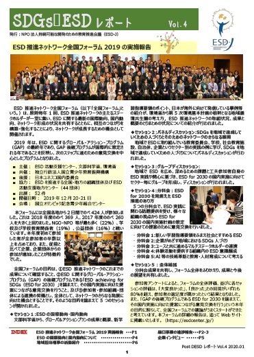 令和2年2月7日に、ニュースレター「SDGs×ESDレポート Vol.4」を発行しました。