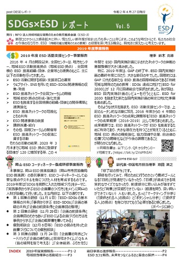 令和2年4月27日に、ニュースレター「SDGs×ESDレポート Vol.5」を発行しました。