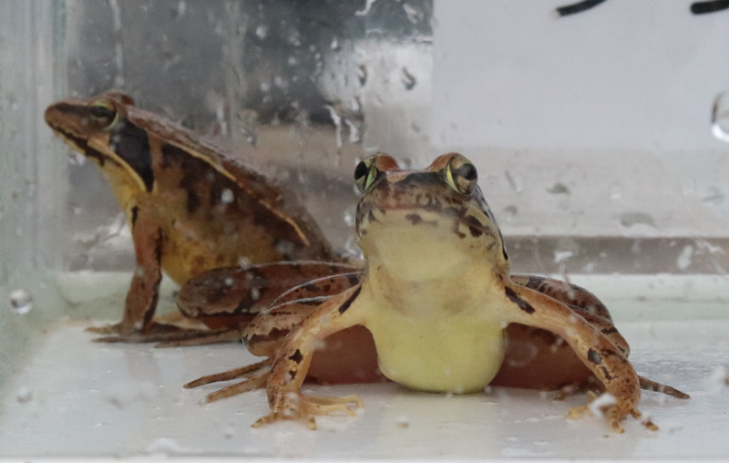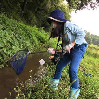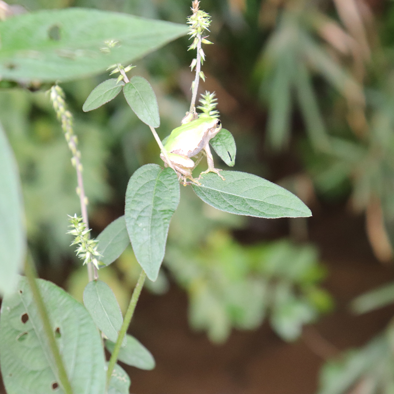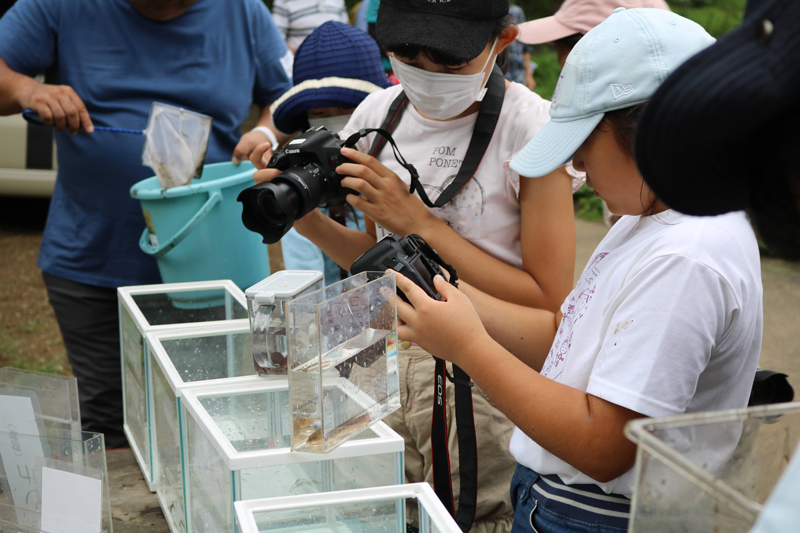 田んぼの生きもの調査は、房総野生生物研究所所長の手塚幸夫さんを講師に実施しました。始めに千葉県の谷津田の特徴と、草地を歩くときの注意点等を伝え、その後は自由に田んぼ周辺の生きもの調査を行いました。すぐに方々から「あ、ドジョウだ!」「カエルだ!」という叫び声が聞こえて来ました。