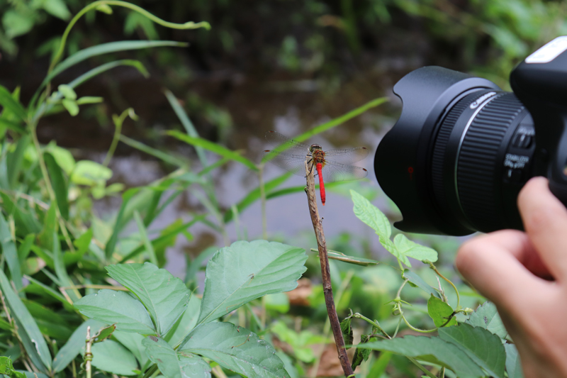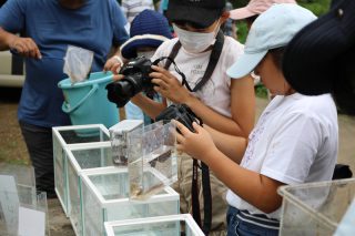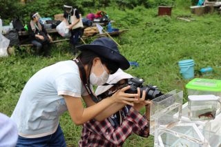 この谷当の谷津田は、耕作放棄地をNPOバランス21が再生して以来、無農薬でお米を育てているため、豊富な生物種を観察する事が出来ました。昼食休憩の時間まで、子供は勿論のこと保護者も童心に返り、泥まみれで生きものを捕獲し、撮影を楽しみました。蝶、蜘蛛、バッタ、トンボ、ドジョウ、めだか、ザリガニ、エビ、カエル、タニシ、アメンボなど、様々な生き物を撮影・観察しました。