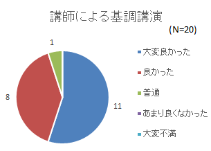 講師による基調講演は、「大変良かった」が11名で最も多く、次いで「良かった」8名で、概ね好評であった。 |
