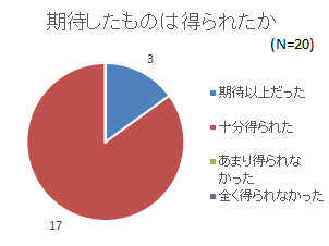 期待したものが得られたかについては、「十分得られた」が最も多く17名、「期待以上だった」が3名で、必要な情報を届けられたようだ。 |