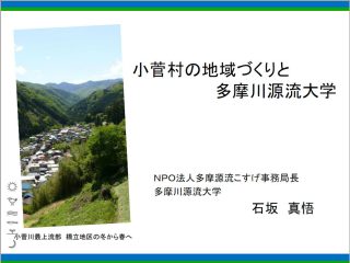 石坂 真悟 さん(NPO法人多摩源流こすげ(源流大学))を講師にお迎えし、山梨県小菅(こすげ)村の豊かな自然資源、環境を活かした地域づくりについてお話を伺いました。