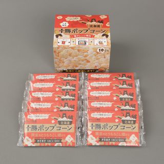 小麦の収穫後、冬の間の仕事を作るため、ポップコーンを作り始めたが最初は霜で全量廃棄となってしまいました。そこで、アメリカの最北端のトウモロコシ畑に行って、情報を収集し、足りない温度を生分解性のマルチを使って補う独自の方法で、ポップコーン用のトウモロコシを育てることに成功しました。ポップコーンのパッケージのモチーフに作用したのは、畑に出没する動物の中からツル、ヒグマ、リスを選びました。現在は塩味しかありませんが、キャラメルバター味、わざび味を開発中です。